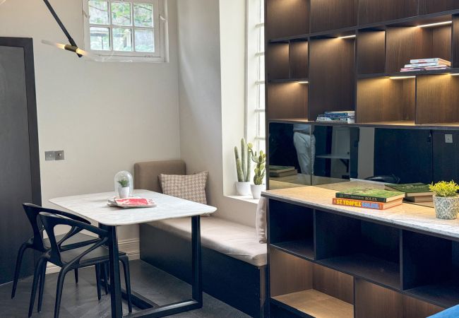 De moderne Amerikaanse keuken is volledig uitgerust met essentiële apparaten, waaronder een inductiekookplaat, koelkast, vriezer, wasmachine, koffiezetapparaat, magnetron en alle nodige borden en een waterkoker. Perfect voor het bereiden van snelle maaltijden of het genieten van een ochtendkoffie voordat je de stad gaat verkennen.