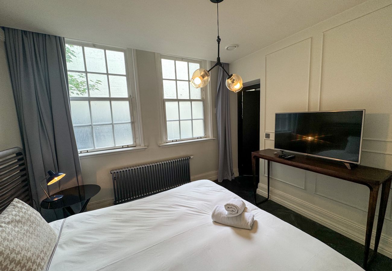 Het appartement beschikt over een ruime slaapkamer met een luxueus kingsize bed, wat zorgt voor een rustvolle nachtrust na het verkennen van de charmante straten van Amsterdam. Twee goed uitgeruste badkamers bieden gemak, waarbij de ene een douche heeft en de andere een toilet, waardoor ochtendlijke routines soepel en efficiënt verlopen.